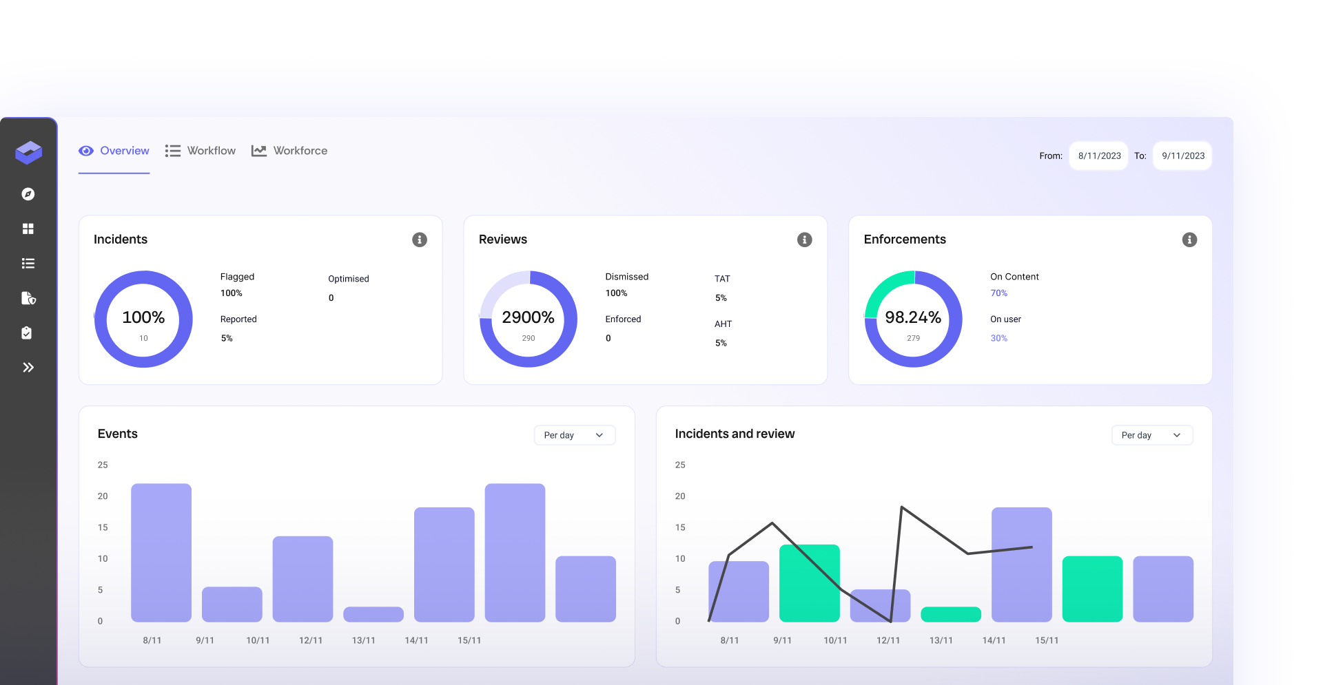 Let your team focus on moderating the things that matter most. Customise and blend your workflow between automated moderation - from ModBot - or human moderation. This human-in-the-loop approach ensures accuracy with unparalleled efficiency and empowered teams.
