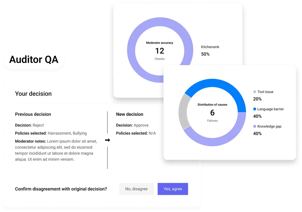 Checkstep launched new features to allow teams to run multiple levels of quality checks, giving large moderator groups the ability to assess and coach moderators AND assess and coach the quality assessors. This also allows teams to create double-verified golden datasets for testing and assessing any of their automated workflows.